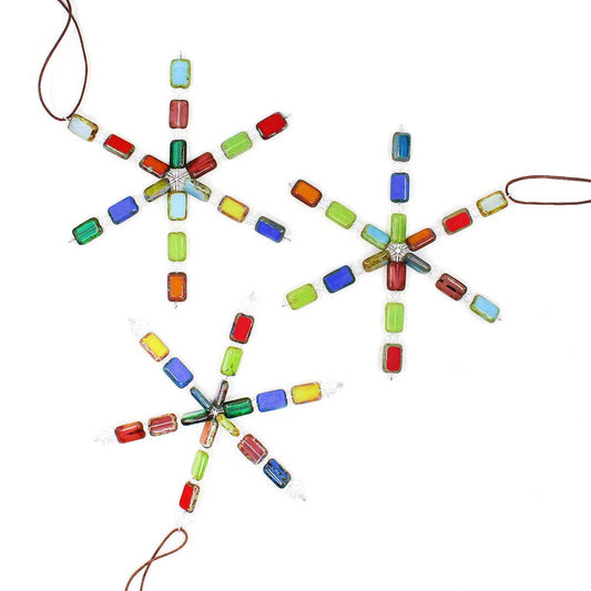 Beaded Snowflake Ornaments for Holiday Decor, Rainbow