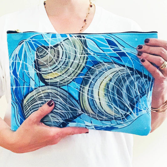 Large Blue Coastal Clams Zipper Clutch Pouch