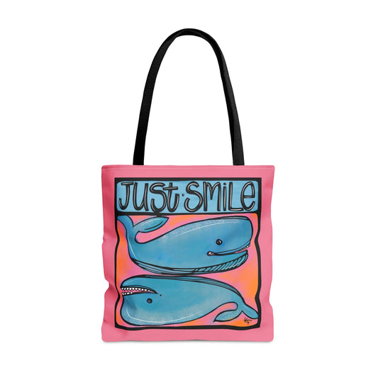 Small Just Smile Coastal Whales Colorful Tote Bag