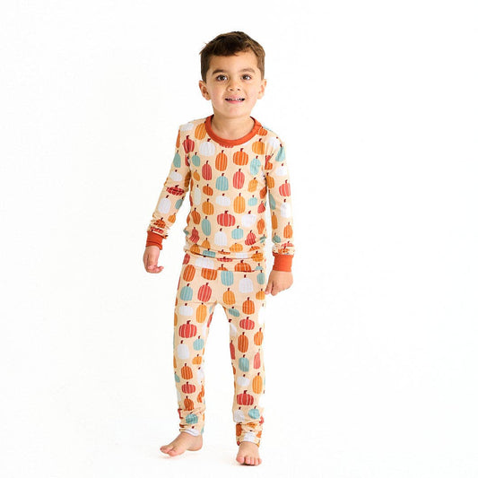 Pumpkin Patch Fall Kids Bamboo Pajamas Toddler Sleep Set: Orange/Multi / 2T