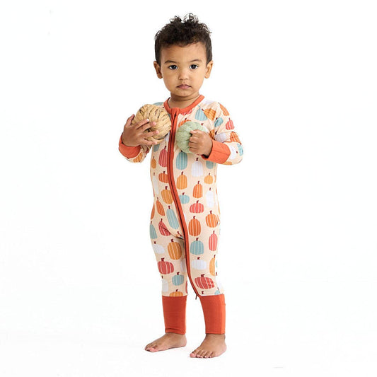 Pumpkin Patch Fall Bamboo Convertible Baby Pajamas Footie: Orange/Multi / 0-3M