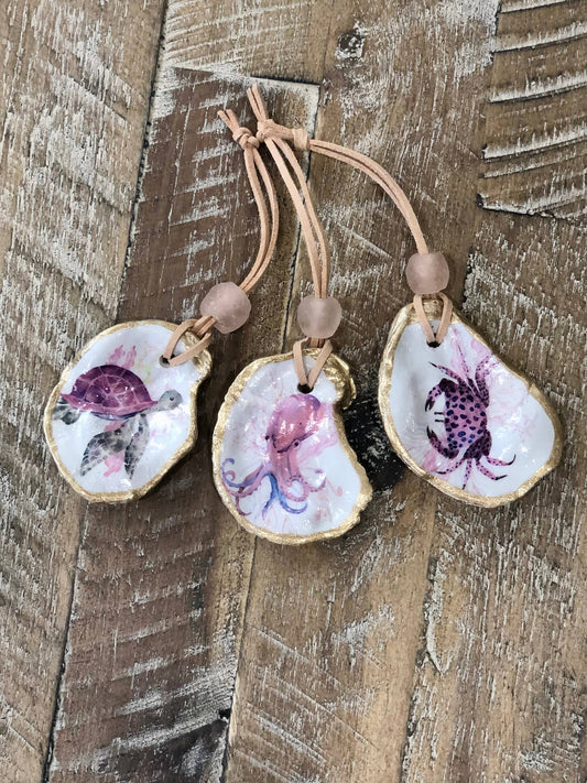 Coastal Pink Animal Ornament / Christmas oyster: Crab