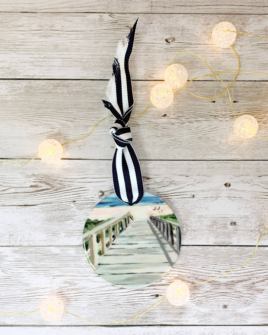 Beach Boardwalk, Coastal Holiday Ornament on Porcelain