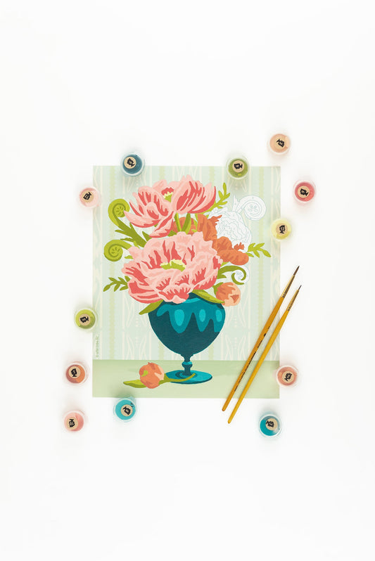 Peonies in Vase (wallpaper background) | 8x10 paint-by-number kit