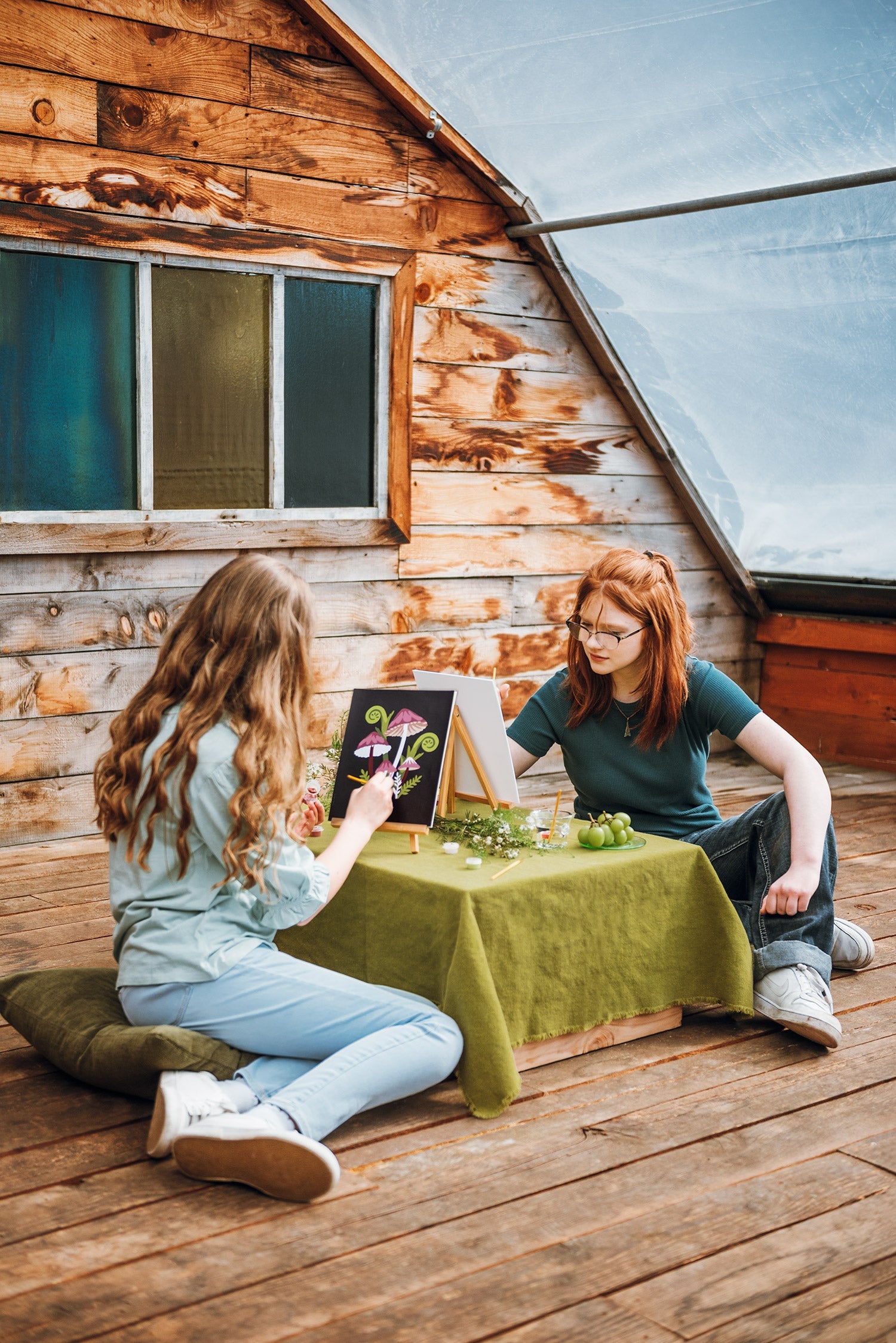 Bleeding Fairy Helmet Mushrooms paint-by-number kit features an encyclopedia plate that showcases berry-capped Bleeding Fairy Helmet mushrooms growing amongst ferns. The preprinted background features the name of the fungi on a rich black blackground. Completing the acrylic painting can take between 3-5 hours. When completed, select a frame at your local craft store and display your new handmade home decor! This DIY craft is recommended for adults and teens age 13 and up.