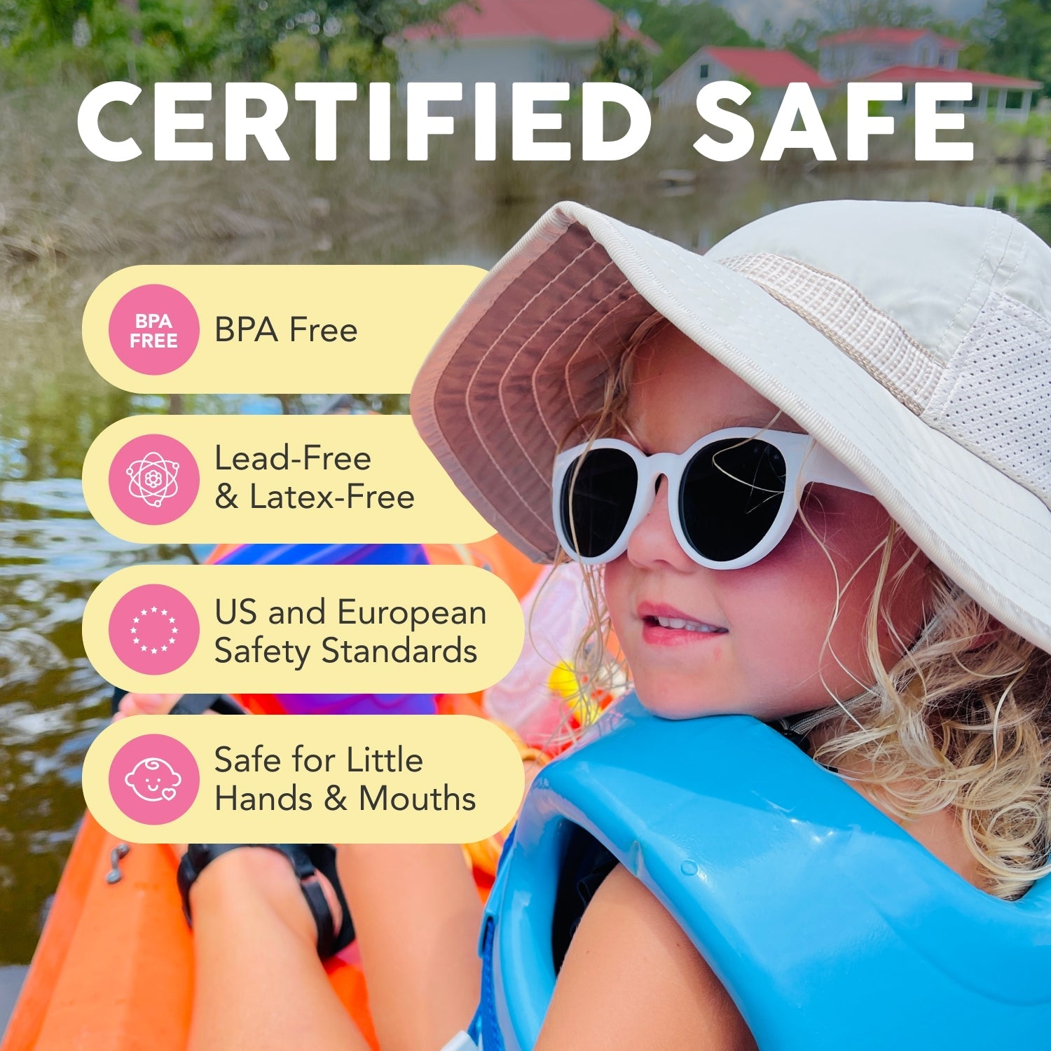 Safety is our #1 priority - especially when it comes to children! All of our lenses offer UV400 protection to block 100% of UVA/B rays, and are also polarized to help reduce glare and eye strain. Nothing but the best for your family!