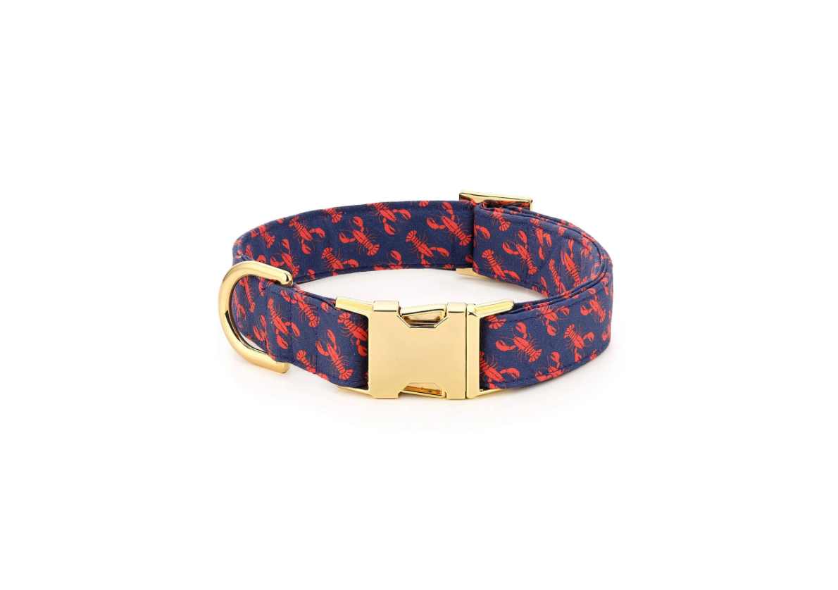 Your pup-stomers will look snappy in this navy blue collar, where the hand-drawn lobsters are the Maine attraction. Designed exclusively for The Foggy Dog by artist Cassidy Demkov.