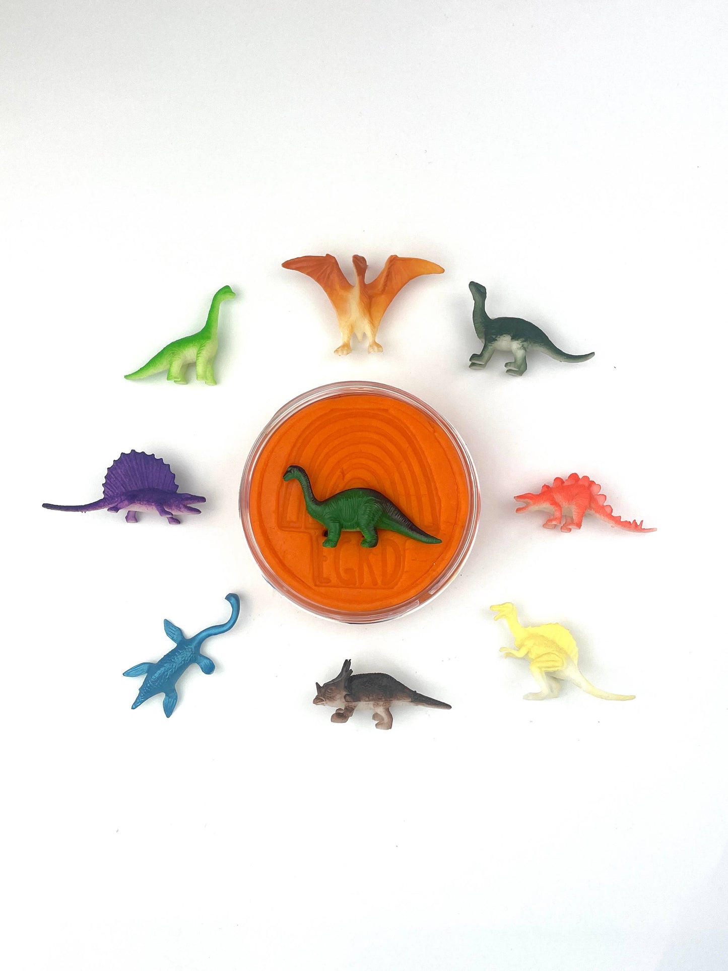 Includes: One Orange (Mango Tango) Half Pound KidDough with one of 12 different hidden dinosaur surprise figurine.