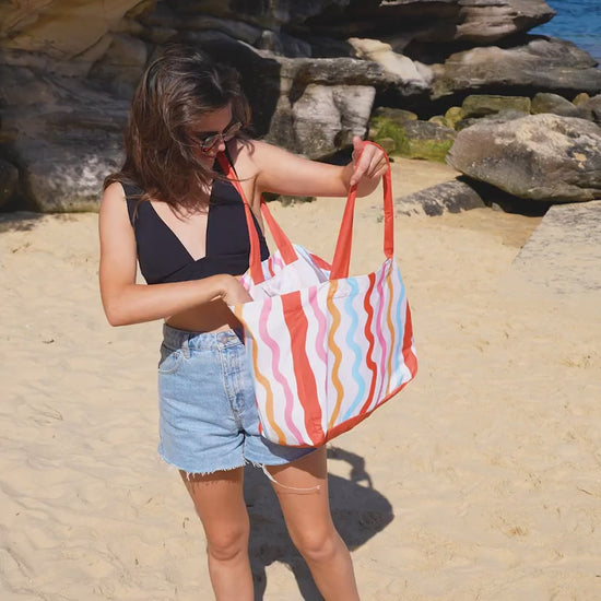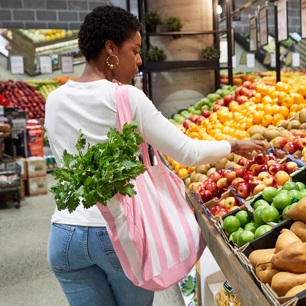 See ya, single-use bags. Say hello to your favourite new carrier - Foldable, eco-friendly, super strong and made from 100% recycled materials. Perfect for hitting the shops or heading to the beach.