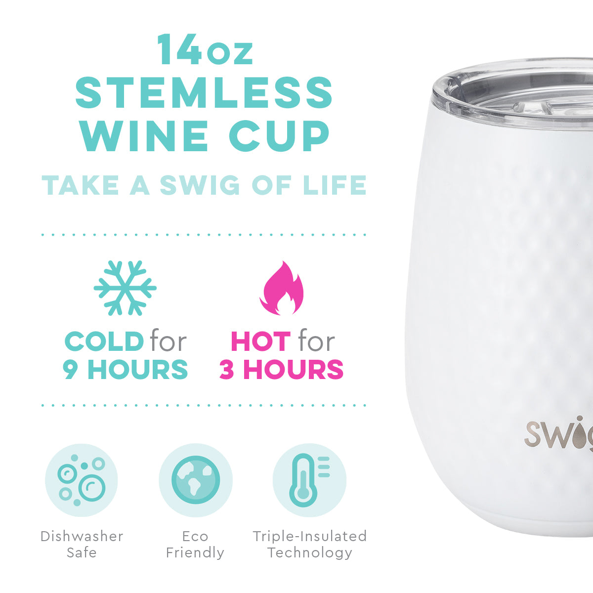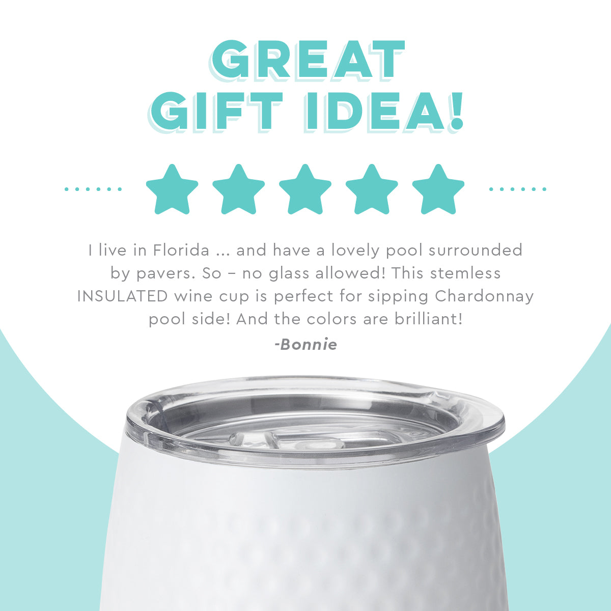 Our triple insulation technology allows our top-selling stemless wine cups to keep drinks cold up to 9 hours and hot up to 3 hours. Their unbreakable construction makes them perfect for enjoying chilled wine or cocktails by the pool, hot tea in the morning or even ice cream sundaes before bed (Swig calories don't count! 😉)