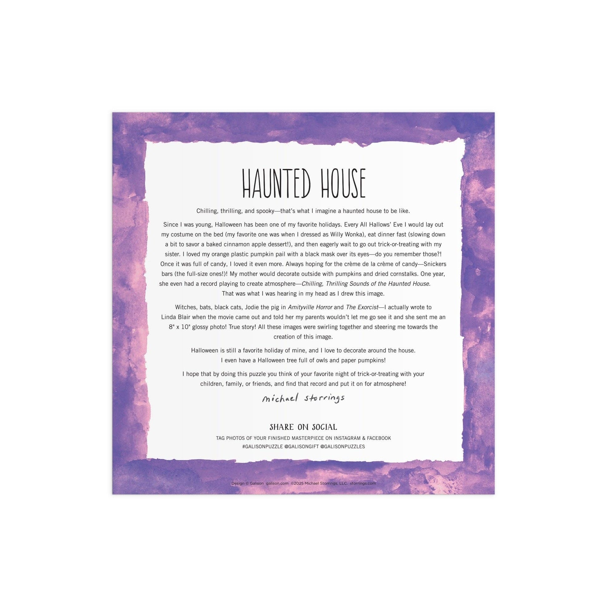 This captivating 500-piece puzzle showcases Michael Storrings' masterful illustration of a haunted house with exceptional detail and atmospheric composition.