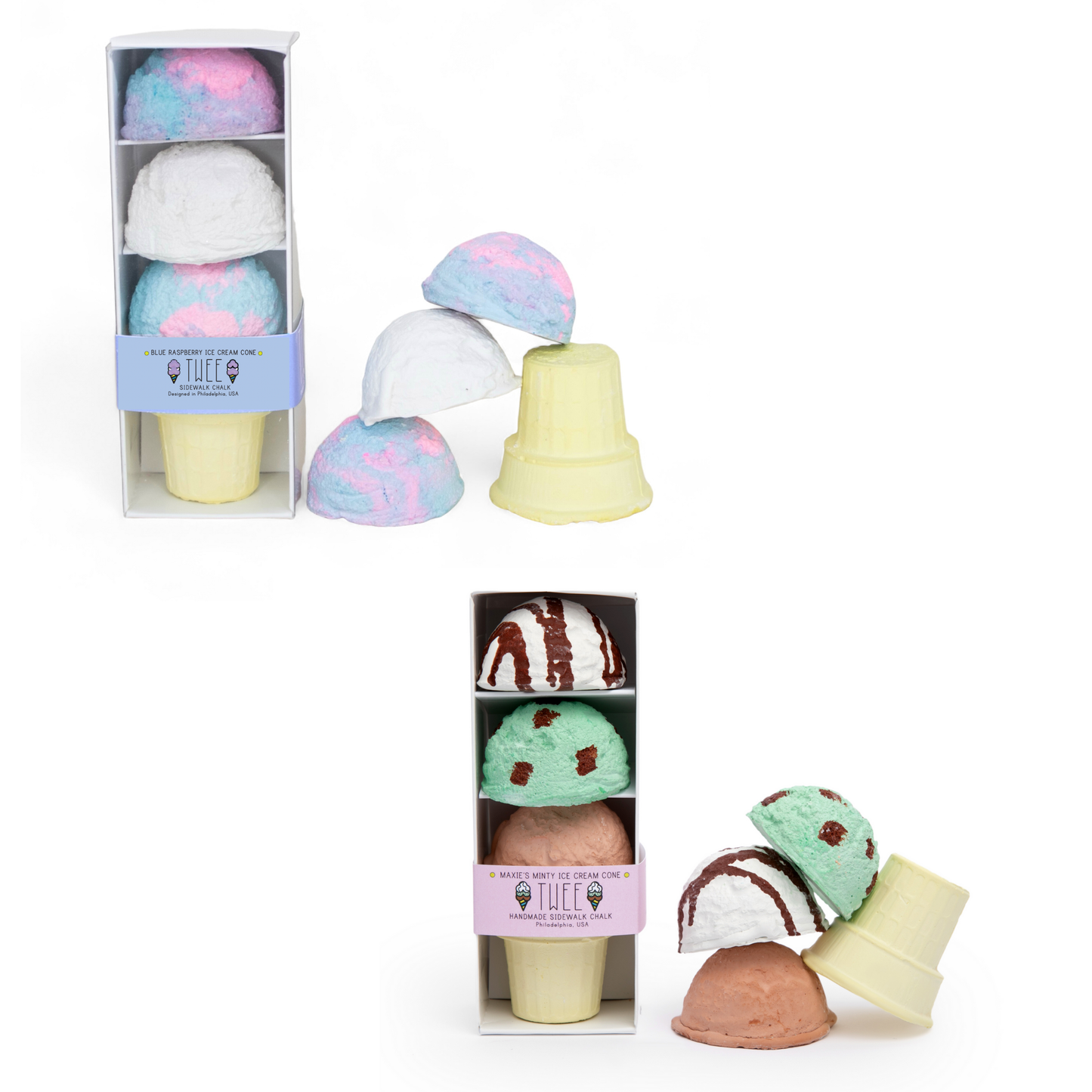 Summer Ice Cream Cones Handmade Sidewalk Chalk: Blue Raspberry Ice Cream Cone
